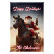 Esta design de Natal divertida mostra o Santo Nicholas em um chapéu vermelho de cowboy, cavalgando um cavalo, e ramificando um grande revólver.