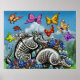 Póster Armadillos Flores Selvagens Borboletas