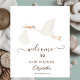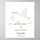 Um anúncio de gravidez de cegonha fofo dizendo que um bebê está a caminho.