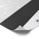 Uma fotografia dinâmica em preto e branco tirada de baixo de um aro de basquete, capturando a rede e o aro contra um céu brilhante. A perspectiva ousada para cima cria um sentimento enérgico e aspiracional perfeito para o quarto de qualquer jogador de basquete, espaço de confraternização de adolescentes ou sala de jogos.