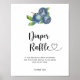 Cartão de convite para chá de fraldas em forma de grão com ilustração aquosa de mirtilos. O texto diz "um bebê doce de fruta está a caminho." Itens correspondentes disponíveis.