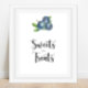Cartão de convite para chá de fraldas em forma de grão com ilustração aquosa de mirtilos. O texto diz "um bebê doce de fruta está a caminho." Itens correspondentes disponíveis.