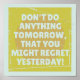 Uma design de tipografia engraçada sobre arrependimentos, isso confunde tensão passada e presente e não faz sentido. Até qualquer coisa amanhã que você possa se arrepender ontem.
