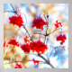Agrupamento de amoras de arararuca vermelha ou de amoras-framboesas, ou de amoras-framboesas altas também conhecidas como "viburnum opulus" contra o céu azul e a folhagem castanha num dia ensolarado de outono. Presentes e impressões para diversão e bom humor