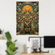 Poster Art Deco Cherry Blossom Tree Throne Gold Teal