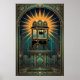 Poster Art Deco Cinema Popcorn Machine Gold & Teal