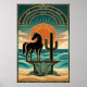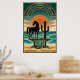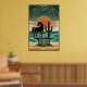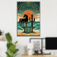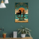 Poster Art Deco Cubist Woman Celestial Sunburst Gold Teal