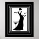 GRANDE Poster ART DECO LADY Pássaros brancos pretos Martini