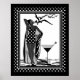 GRANDE Poster ART DECO LADY Pássaros brancos negros Martini Pontos Bolinhas