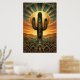 Poster Art Deco Saguaro Cactus Sunburst Desert Gold Teal