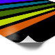 Um padrão solar clássico de deco de arte no arco-íris. Um padrão icônico da ascensão solar por trás de um edifício estilizado em forma de arte. Um design simples, mas elegante, verdadeiro à era.