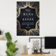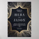 Uma suíte de casamento maravilhosamente dramática, com um padrão intrincado, original de ouro, estilo Nuevo, em uma base de carvão noturno impressionante. Seu texto é escolhido num branco marcante, para criar um contraste que soletra luxo e drama. Perfeito para um casal que quer causar impacto.