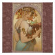 Uma bela mulher - Esta bela design de arte nova é de Alfonse Mucho, chamada "Fruta", pintada em 1897. Mostra uma bela moça de arte nuveau segurando um punhado de frutas - uvas, peras, maçãs. No cabelo dela estão flores laranja. Alphonse Mucha - Art Nouveau - Mulher Vintage