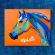 Poster de Arte Abstrato de Cavalo Azul e Laranja - Personalize com um nome ou qualquer texto que você queira adicionar.