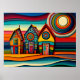 Um abstrato de uma representação de umas cabanas de praia coloridas.