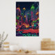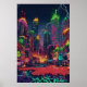 Experimente o pulso selvagem da vida noturna da cidade com esse trabalho de arte urbano surreal, onde cores neonatais e arranha-céus deambulantes colidem em energia caótica. Perfeito para amantes da arte neon cityscape, impressões urbanos de arte de rua e designs dinâmicos de cidades gráficas.