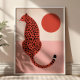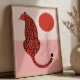 Este pôster de arte de animais moderno apresenta uma ilustração ousada de leopardo feita em tons impressionantes de rosa e vermelho. O design estilizado combina charme contemporâneo com elegância lúdica, criando uma peça vibrante que adiciona energia e personalidade a qualquer espaço. Perfeito para interiores modernos, ecléticos ou maximalistas, esta obra de arte traz um toque chique de cor e charme feroz para a decoração da sua parede.