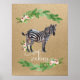 Impressão de zebra doce, com fundo marrom kraft, folhagem em aquarela e flores cor-de-rosa, e texto em caligrafia branca. *Arte por GraphicBox & WhiteHeartDesign