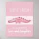 Esta arte encorajadora e fofa para meninas apresenta um crocodilo/jacaré em aquarela rosa, com espaço para adicionar o nome da sua filha ou bebê e uma descrição em tipografia bonita. Perfeito para o berçário do seu bebê ou quarto das crianças! Confira o restante da nossa coleção para outros animais da selva safari rosa em itens correspondentes!