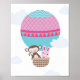 Poster Arte de berçário de macaco e coelho em balão de ar