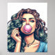 Mulher soprando Pastilha de bolha de pastilha elástica ilustração de arte poster