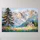 Rácio 2:3. Traga a beleza da natureza para dentro com esta pintura vibrante de uma cabana de montanha cercada por flores silvestres. Este poster impressionante de arte de muro captura a serenidade da natureza selvagem, perfeita para adicionar uma abertura de cor e tranquilidade à decoração da sua casa ou escritório.