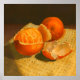 Pintura de natureza-morta de laranjas sumarentas e suculentas sendo descascadas. Obra de arte: Pastel a óleo em painel. Direitos autorais 2014 Dominic A. White