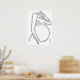 Uma linha segue as curvas graciosas da figura de uma mulher grávida, e afirmações positivas de nascimento seguem a linha para significar o caminho da gravidez que leva ao parto...