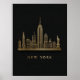 Poster Arte de Linha Dourada do Skyline Nova Iorque