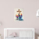 Felz pascoa com este coelho ou coelho da Páscoa giro, ovos coloridos de páscoa e uma cruz.