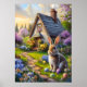 Felz pascoa com esses animais bonitos como coelhinho de Páscoa ou pintinho de bebê. Junte-se à caçada de ovos de Páscoa em primavera com cores vibrantes e alegria, doces e uma fantasia floral vintage. Coelho bonito com flores. Arte na parede do jardim de flores de páscoa.