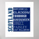 A impressão de arte do metrô apresenta a Escócia e 7 das suas maiores cidades em várias fontes.
