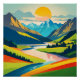 Ilustração Colorida da Paisagem da Montanha Retroativa