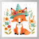 Poster Arte de Parede Adorável Raposa Vermelha Floral par