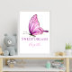Personalize esta poster de arte de berçário de borboletas roxa e rosa, com seu texto e nome para bebês.