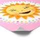 Cartaz fofo para meninas com ilustração de desenho animado de um sol feliz e sorridente dentro de uma borda de bolinhas coloridas.