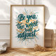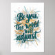 Abrace sua individualidade com esta impressão de arte inspiradora "Seja Você, O Mundo Se Adaptará". Com uma citação ousada e manuscrita em azul turquesa sobre um fundo de texturas de aquarela dourada e azul brilhante, esta peça é um lembrete vibrante para permanecer fiel a si mesmo. Perfeita para adicionar um toque de inspiração e confiança à decoração da sua casa ou escritório.