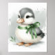 Pato fofo em preto e branco com um toque de cor sage na fita.