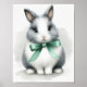 Coelho fofo em preto e branco com um toque de cor sage no laço.