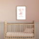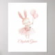 Arte de parede personalizada caprichosa de coelho bailarina rosa para berçário, disponível como impressão ou arquivo digital em tamanhos de 13x18 cm a 76x102 cm.