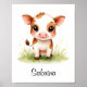 Ilumine o berçário do seu pequeno com este encantador pôster personalizado que apresenta uma adorável vaquinha com grandes olhos castanhos e bochechas rosadas. De pé em um campo de verde suave e flores silvestres, este bezerro amigável adiciona um toque doce e divertido a qualquer berçário com tema de fazenda ou estilo country. Torne-o ainda mais especial personalizando-o com o nome da sua criança na parte inferior - perfeito como um presente de chá de bebê de coração ou para decorar um espaço aconchegante no berçário.