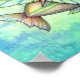Póster Arte de pintura da sereia fofa e fantasia de peixe
