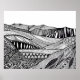 Poster Arte de rabo branco-abstrato preto na paisagem da