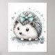 Ouriço bonito preto-e-branco com um toque de cor verde-menta na fita.