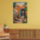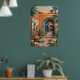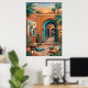 Poster Arte do Pôr do Sol no Pátio - Arcos Turquesa Boho