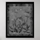 Margarida alegre em uma fronteira floral em impressão de poster preto e branco.