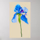 Uma pintura moderna de aquarela fluida do artista Sacha Grossel, de uma flor azul da íris. Este simples design elegante é de uma ilustração pintada manualmente. Moderno, de festa e design floral.