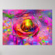 Um trabalho de arte de mesmerização e surreal de um rosa de cor arco-íris enfeitado com gotículas de água brilhando. Esta imagem foi uma foto de um rosa que passou por um gerador de ar aer. Radiando com matizes ousados neon e texturas sonhadoras, esta fantástica peça floral evoca magia e emoção - perfeita para amantes de flores, sonhadores, e fãs de arte psicodélica da natureza.