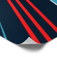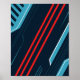Um trabalho de arte abstrato digital com linhas diagonais em negrito e padrões geométricos em azul escuro, ciano, vermelho e branco. O design combina ângulos agudos com faixas paralelas, criando um estilo visual elegante, moderno e futurista.