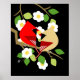 Cardeal vermelho e beige, ave cardinal com flores em ramos de árvores, arte vetorial de aves